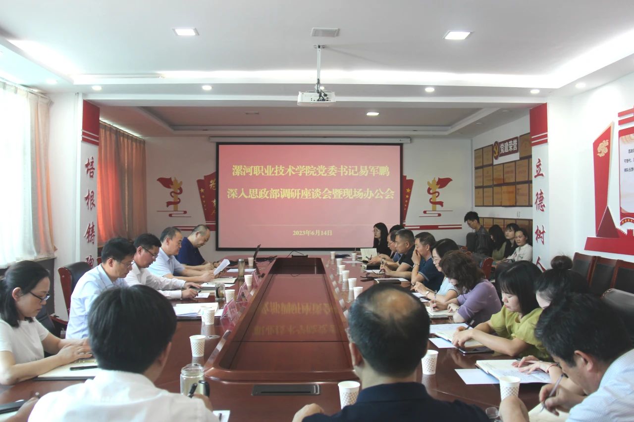 易军鹏认真听取了思想政治理论部负责人关于部门工作开展情况和下一步工作计划安排的汇报,并就省级示范性太阳成集团tyc539创建、教学团队建设、大思政课建设、实践研修、职称评审等话题与在座的老师进行深入互动交流,详细询问了解思想政治理论部当前发展存在的困难以及急需解决的问题,要求与会各相关处室负责人现场进行了回复解答。