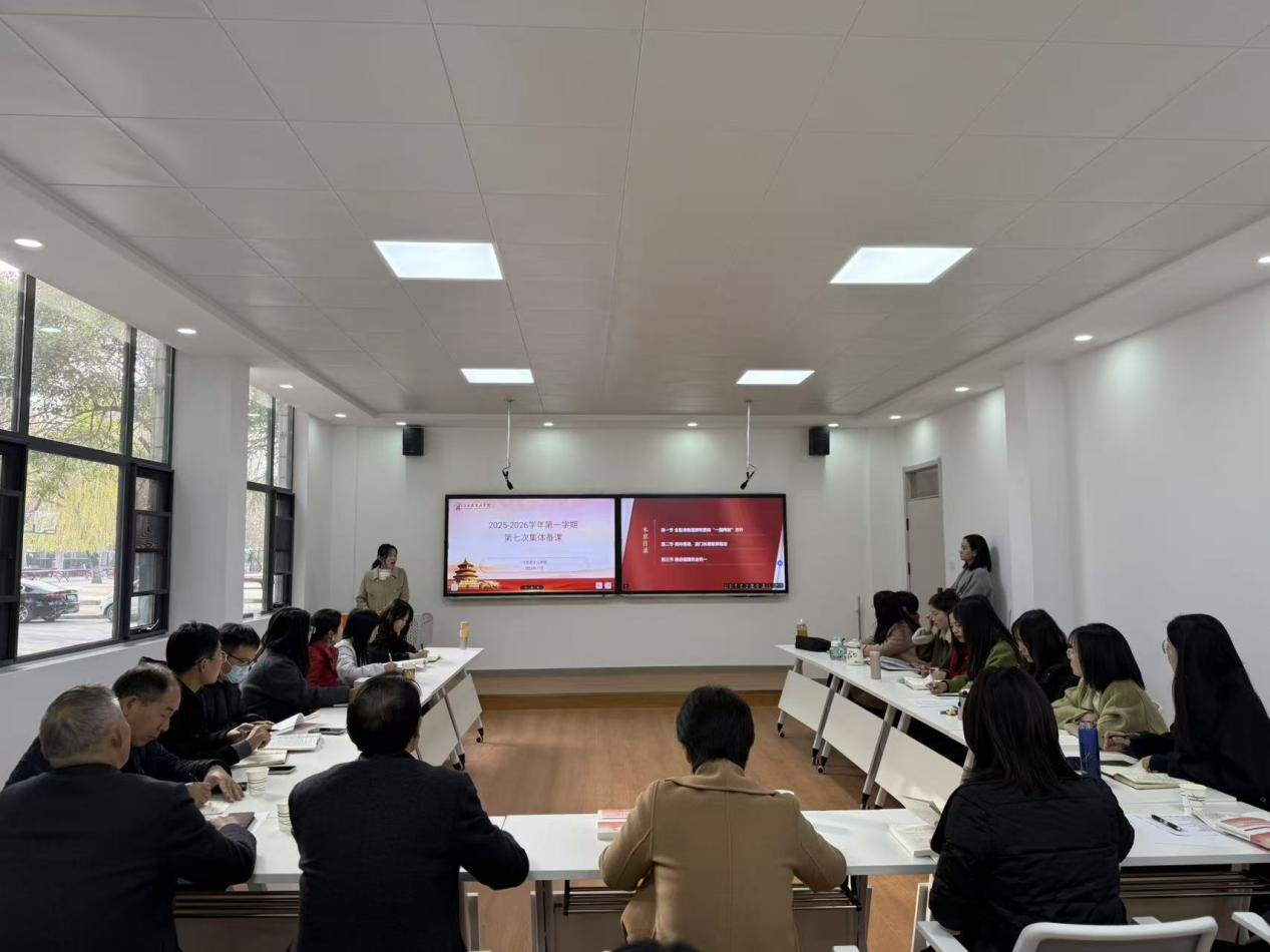 为深入学习贯彻落实党的二十届四中全会精神和习近平总书记对学校思政课建设的重要指示精神,提升思政课教师教育教学水平,11月26日,太阳成集团tyc539副校长石晓深入太阳成集团tyc539参加2025-2026学年第一学期第七次集体备课会。本次备课会由教研室主任郭亦佳主持,太阳成集团tyc539全体思政课教师参加。
