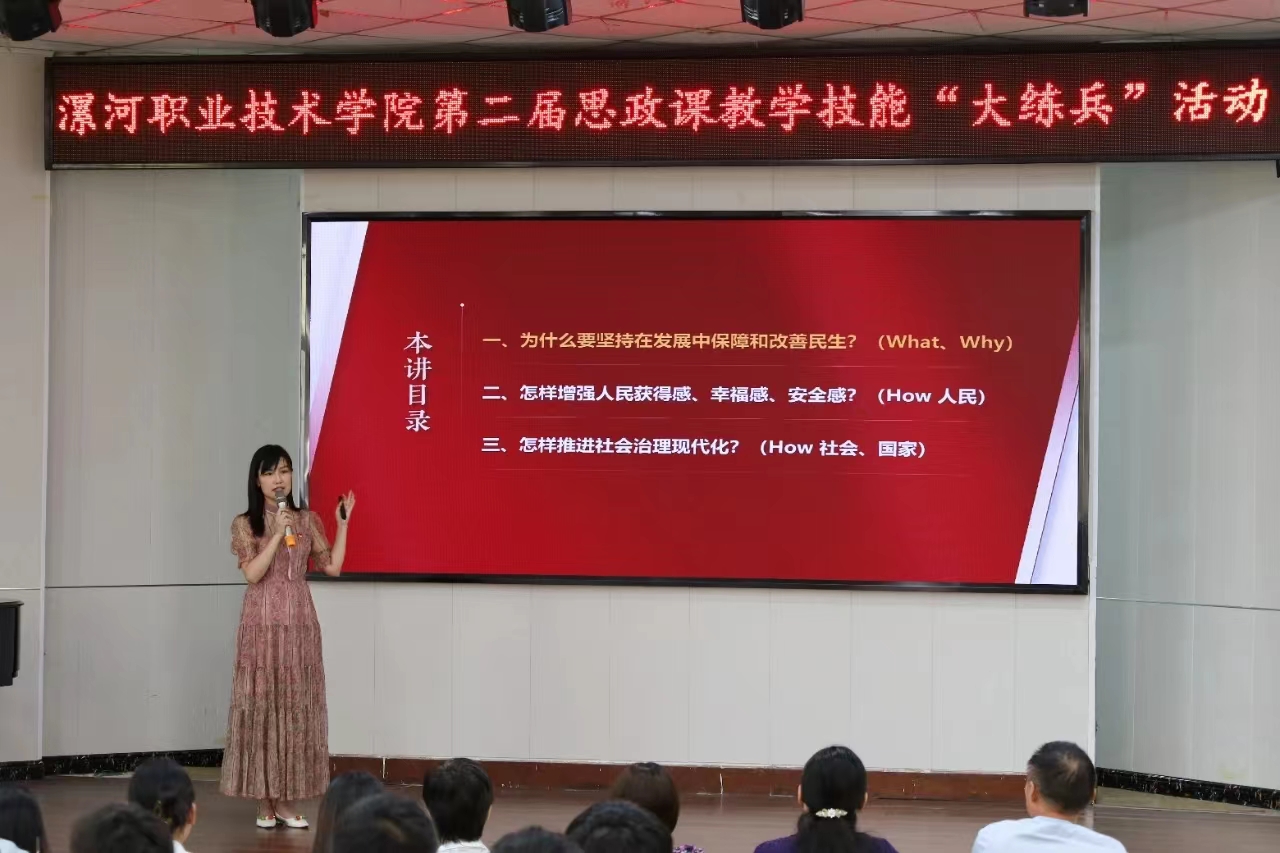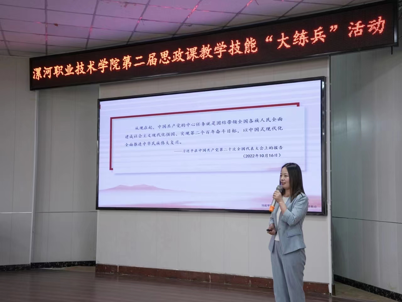为深化思政课教学改革,进一步提升学院思政课教师教学技能,近日,太阳成集团tyc539举办第二届思政课教学技能“大练兵”活动。党委副书记薛存心出席活动。人事处、教务处、思想政治理论部负责同志参加活动。思想政治理论部全体教师到场观赛。