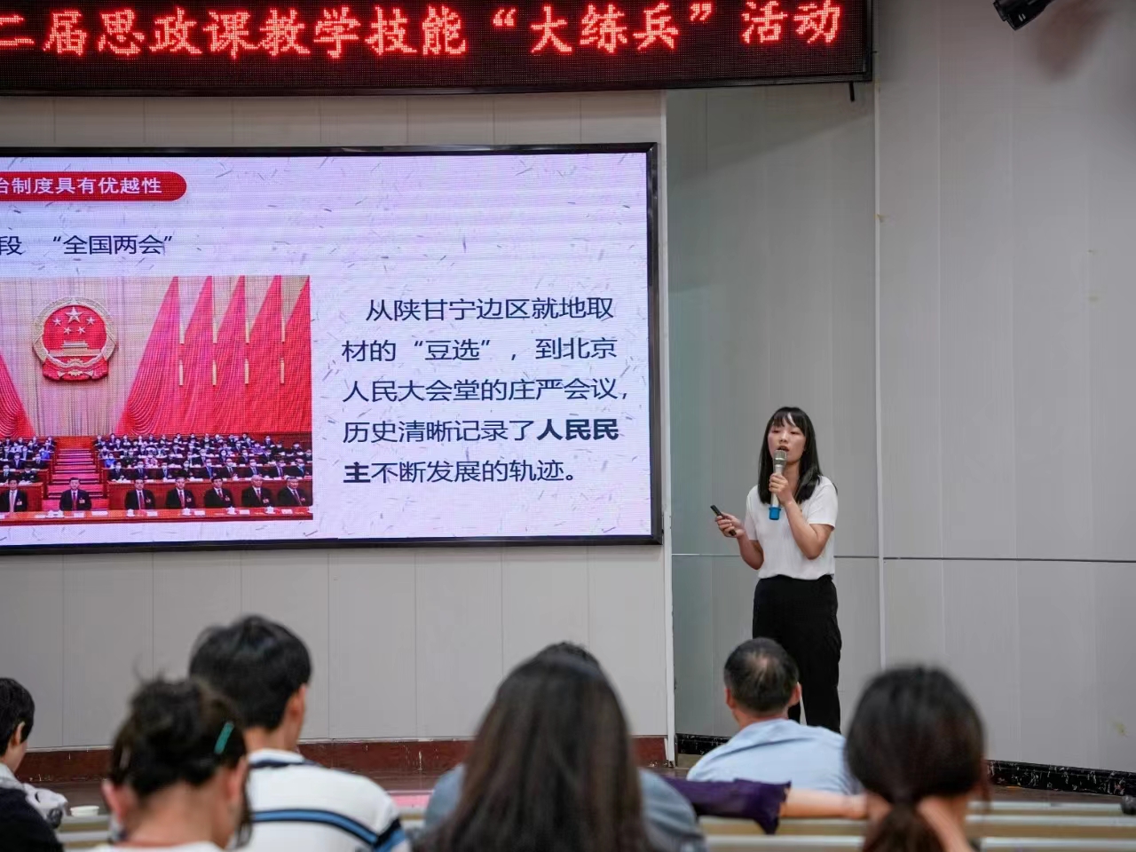每位参赛教师立足于思政课教材和教育部统编课件,在教学中运用多种教学手段对课程进行巧妙设计,力争把思政课讲深、讲透、讲活,为在场的师生呈现了精彩纷呈的思政课,展现了思政教师扎实的理论基础、过硬的教学能力、积极的精神风貌。
