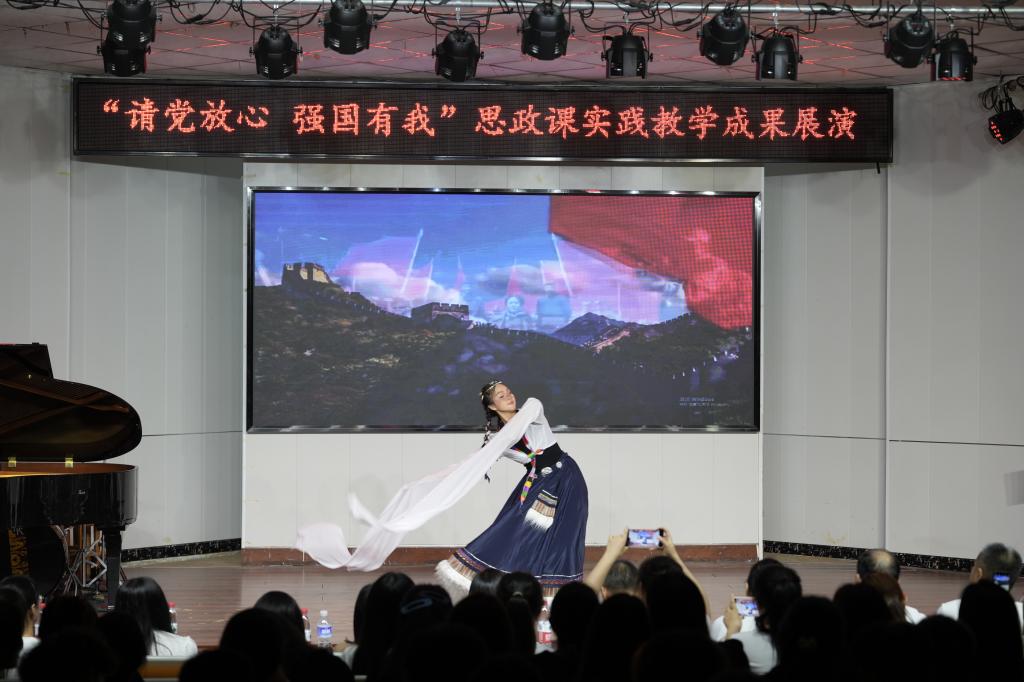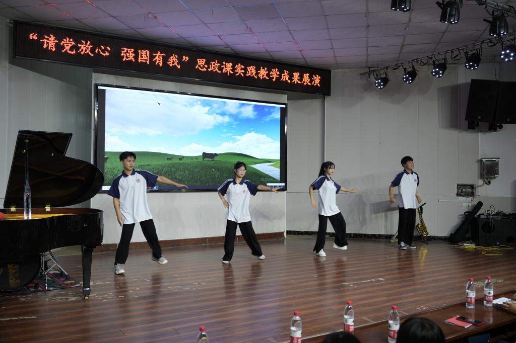 大合唱《理想耀中国》唱出对理想的追求和对祖国的热爱,舞蹈《站在草原望北京》和二重唱《万疆》深情地表达着中华民族血脉相连、共同繁荣的强烈情感;《巴黎和会和五四运动》重现五四运动的历史过程。此外,舞蹈《再唱山歌给党听》、朗诵《请党放心、强国有我》、舞台剧《赵一曼》等节目各具特色,用不同形式展现了同学们对党的忠诚和对祖国的担当承诺。最后,《海阔天空》《南方》《国际歌》以激昂的歌曲联唱形式,将现场气氛推向了高潮。