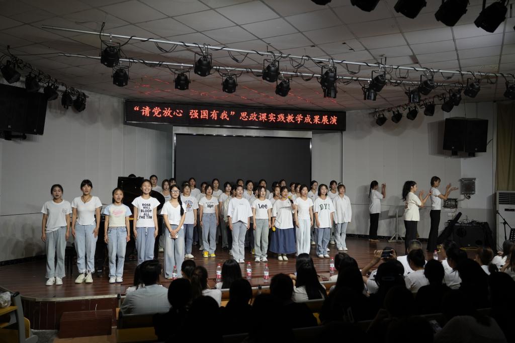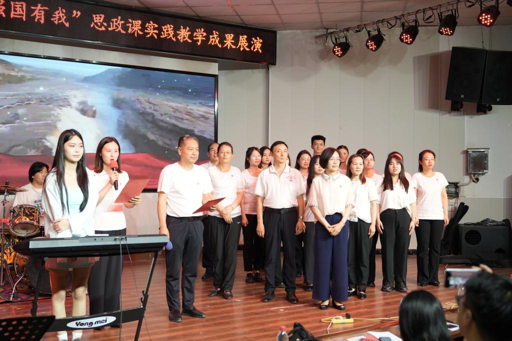 活动接近尾声,学院全体教师和音乐舞蹈系师生代表合唱《黄河大合唱》,激昂的歌声回荡在礼堂上空,为整场演出画上了圆满的句号。