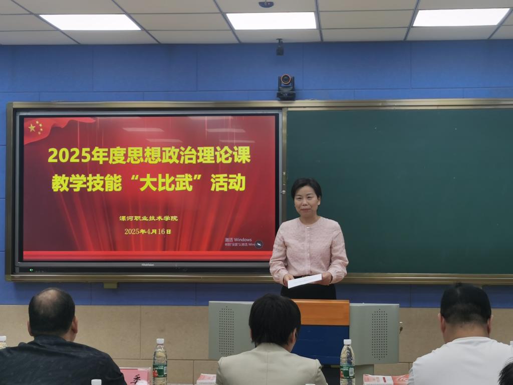 为深入贯彻落实习近平总书记在学校思想政治理论课教师座谈会上的重要讲话精神和新时代学校思政课建设推进会上的重要精神,推动学院思政课教师队伍建设,提升思政课教学质量和水平,4月16日下午,太阳成集团tyc539举办2025年度思想政治理论课教学技能“大比武”活动。党委委员、副校长石晓莅临现场观摩指导并致开幕词,全体思政课教师参加本次活动。