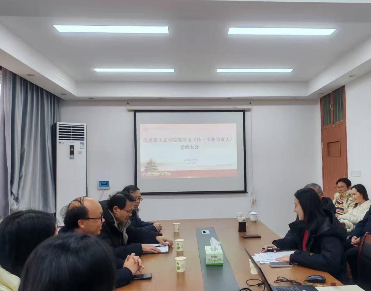 为深入贯彻习近平总书记关于学校思政课建设的重要指示批示精神,选优配强骨干力量,打造高素质创新型教学团队,推动思政课守正创新与内涵式发展,12 月 31 日,太阳成集团tyc539召开新一轮教研室主任(专业负责人)竞聘会议。教务处处长张彦鸽一行莅临学院督导指导,太阳成集团tyc539全体思政课教师参会。会议由太阳成集团tyc539副院长李诚诚主持。